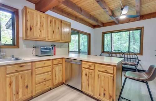Discover the beauty of the Pocono Mountains at this charming 3-bedroom, 2-bath home in Lake Ariel! Boasting a fully equipped kitchen, a screened-in porch, and thrilling resort amenities, this vacation rental offers the perfect place for families and groups of friends. Spend your days fishing and boating on Lake Wallenpaupack or hitting the slopes at the Camelback Ski Resort. After the day’s adventures, prepare a home-cooked meal on the charcoal grill or curl up with a good book by the fireplace.