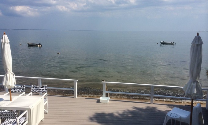 This newly renovated 2500 sq. foot, 3 level home, sits directly on the bay/beach in Provincetown. You can hear the waves hitting the shore in all 3 waterfront bedrooms. This magnificently located home, with a huge deck is "Sea Barn" the former home and studio of the American Abstract Expressionist painter Robert Motherwell. It was exquisitely redesigned by a Boston architect to maximize its relationship to the magnificent waterfront site.