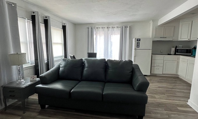 Our location offers easy access to Norfolk International Airport, Naval Station Norfolk, and local restaurants. Unwind in our fresh and clean apartment, featuring an open-concept layout with a compact kitchen and dining area ideal for intimate meals. The apartment is equipped with essentials, including a microwave and Keurig.