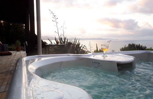 Sea-Escape is our stunning secluded retreat with native bush and near new 1 bedroom "Bach" and spa overlooking the ocean it offers the ultimate getaway for that special occasion where " time out" is what you are looking for. Wake up to the sound of waves and ocean views from a comfy king size bed or admire the view whilst soaking in the spa. Open plan kitchen, lounge and dining opens onto the deck with barbeque and table and chairs where you can sit and enjoy a morning coffee or afternoon wine in peace and quiet. The Bach is well equipped for your convenience and comfort - Sky TV, Stereo,fireplace, washing machine, linen, hairdryer,heater. Things you may like:) "Luke's cafe " is a favourite for good coffee, deliciously good food and relaxing atmosphere. 5 minute walk to Rings beach, 20 minute walking tracks along the beach join up to Matarangi. Stargazers Astronomy Tours Opito Bay Beach Cathedral Cove walk and hiking trail . Enjoy Coromandel.