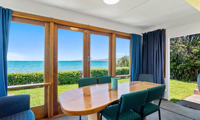 This home offers a true kiwi batch feel, located on the water front you won't be disappointed at the views and the peacefulness of listening to the ocean lap at your front door.