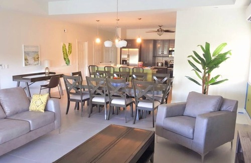 Sea Glass Villa. Offers complete privacy. 4 bedroom, 5 bath rental villa with a private pool in the peaceful, safe, secure, and very popular gated development of Samaan Grove. The well-groomed surroundings and the lakes make the Samaan Grove environment very park-like, and guests and children will enjoy the very quiet, private, and peaceful surroundings.