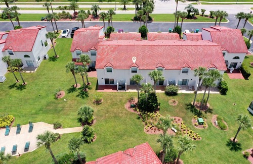 Escape to your vacation beachside oasis in this quiet quaint community, Fully furnished Mediterranean townhome located only steps to the Beach and river! This comfortable 2 bedrooms, 2 ½ bathrooms townhome accommodates up to 4 people comfortably. This home features a gated private courtyard with separate entry to a 1 car garage. Downstairs features a remodeled half bath, inside laundry and office nook. Walk upstairs you will find a 2 bedrooms, king bed in master and queen bed in guest room. Both bedrooms have huge walk-in closets.
