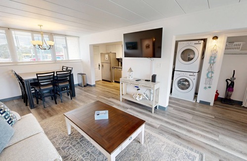 The kitchen is equipped with an oven and a refrigerator, as well as a coffee maker, cookware, and a toaster. Connect to the free WiFi, or get cozy in front of the cable/satellite TV. And you won't have to pack extra clothes, because you'll have a washer and dryer, too. Other amenities at this 2-bedroom, 1-bathroom rental include bed sheets, an ironing board, air conditioning, and heating.