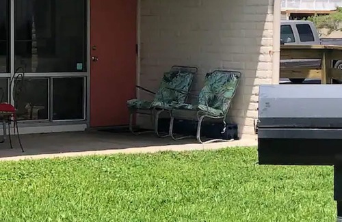 Port Aransas ground floor 2 bedroom/2 bath 1100 sq ft condo that has easy access to the pool and beach. Very few Sea Sands condos have in condo full size washer and dryer. Smart TVs in every room. Custom lighting. Private ground floor entry.