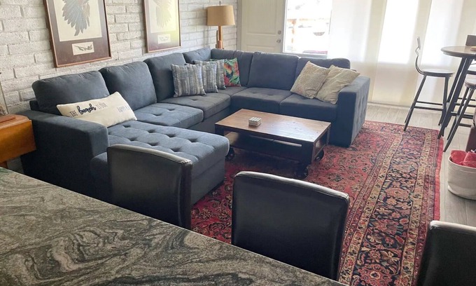 Great in town location, Sea Sands condo sleeps 8, with boardwalk access to the beach. Modern and beachy with real brick walls, ship lap, gorgeous Sea Sands ground floor condo with NO steps. Designer finishes, granite counters, over sized gourmet kitchen, all stainless appliances, smart tv in every room, new air conditioning, private patio, right by the pool, new full size in unit washer and dryer and comfortable coastal style furnishings. Wifi, with Hulu, Spectrum TV.