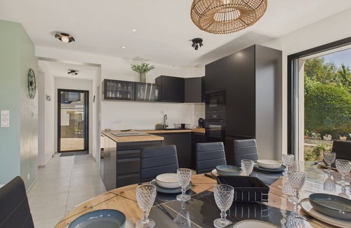 Welcome to Saint-Gildas-de-Rhuys, just 500 metres from the Rohu and Govelins beaches, where this brand new, fully equipped house welcomes you for family or friends' holidays. Its enclosed garden with terrace and barbecue invites you to share convivial moments outdoors, while a bedroom upstairs offers a balcony with a beautiful sea view. Fully equipped, it can accommodate up to 10 travellers. In a quiet corner, close to the ocean, you will enjoy a rejuvenating stay between swimming, water activities and seaside walks.Enter through the entrance door and discover a large, bright living space open to the terrace and garden. The modern, fully equipped kitchen (refrigerator, freezer, oven, microwave, dishwasher) will allow you to cook as if at home. For your breakfasts, a kettle, toaster, and Nespresso coffee maker are at your disposal. Share your meals around the large dining table for 10 people or, on beautiful days, enjoy the one installed on the terrace. In the evening, gather in the lounge area, comfortably seated on the sofa facing the television.The accommodation has 4 bedrooms. On the ground floor, a bedroom with a double bed, travel cot, wardrobe and private shower room. Upstairs, a master suite with a King Size bed (180x200 cm), private shower room and balcony with sea view, a bedroom with a double bed (140x190 cm) and a bedroom equipped with a bunk bed, a single bed (90x190 cm) and a trundle bed.A shared bathroom with a bathtub and hairdryer is also located on the floor. The accommodation has 2 separate toilets.A washing machine is located in the laundry room and a baby cot as well as a high chair are at your disposal.You will have 2 parking spaces in the courtyard of the accommodation.Ideally located for families, the rental is located at:- 500 m from the Rohu beach- 500 m from the Govelins beach- 850 m from the Rohu Nautical Club- 900 m from the restaurant "La Cabane des Poissons Rouges"- 1 km from the restaurant "Le Vert d'O"- 1 km from the "Bluegreen Rhuys Kerver" Golf Domain- 3 km from the "SPAR Saint-Gildas-de-Rhuys" supermarket- 3 km from the centre of Saint-Gildas-de-Rhuys- 8 km from the "LIDL Sarzeau" supermarket- 8 km from the town of Sarzeau- 11 km from the "Pop corn Labyrinthe" theme park- 12 km from the Château de Suscinio- 15 km from the "Celt'Aventures" theme park- 30 km from the Bretagne Atlantique Hospital Centre - Vannes site- 30 km from Vannes train stationSaint-Gildas-de-Rhuys, a charming Breton commune nestled on the Rhuys peninsula, captivates with its fine sandy beaches like Goh Velin and its coastal paths offering superb panoramas. The Romanesque abbey and Port aux Moines bear witness to a rich historical heritage. Ideal for hiking, water sports or peaceful walks, it is also close to Arzon, Sarzeau and the Suscinio castle. From the peninsula's coastline, it is easy to reach by boat the islands of the Gulf of Morbihan, such as Île d'Arz or Île aux Moines. A perfect place to discover Brittany between nature and culture.This accommodation benefits from a concierge service with a team available throughout the stay for personalised services.This furnished accommodation has Wi-Fi access.This location does not have access for people with reduced mobility.Animals are accepted in this rental.The accommodation tax will be added to the rental amount and must be paid in advance of your stay.REF : Hoomy12546