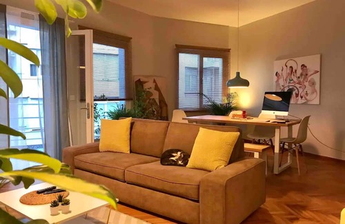 Located in the most central location in Izmir, Karsiyaka, our apartment is a few steps from the sea (10 meters) walking distance. Bus stop, vaporetto and metro station are very close. (3-5 min. walk) There are raki-fish restaurants and bars in Bostanlı district. Access to restaurants and bars is 2 euros by taxi. It can also be reached on foot. Alsancak bars street can be reached with a 15-minute ferry ride. The cozy, quiet bedroom has a bathroom and an equipped kitchen. There is a double bed in the bedroom. In the lounge there is a single sofa. There is a direct metro ride from the airport.