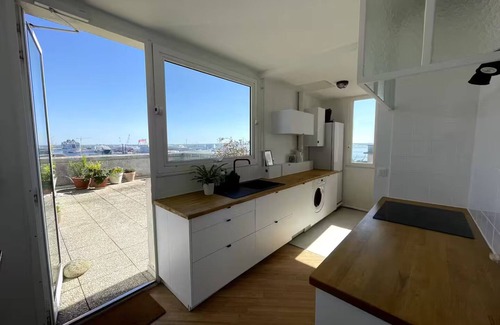 Sea view apartment - 2 terraces is located in Saint-Nazaire. Sea view apartment - 2 terraces provides accommodation, featuring Bedding/Linens, Wellness Facilities, Fireplace/Heating, among other amenities. This Apartment features Bedding/Linens, Wellness Facilities, Fireplace/Heating, to make your stay a comfortable one.