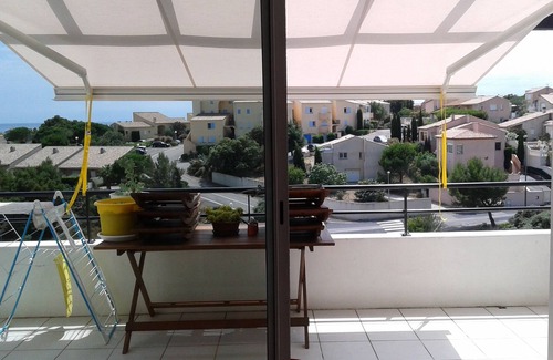 A15 kms from Narbonne, and after crossing the magnificent massive Clape, you will discover Narbonne Plage, seaside resort in Languedoc Roussillon and remarkable sandy beach 5 km long. To spend a quiet holiday, we offer in a residence on the heights of Narbonne Plage, a type T3 apartment of 60 m2 on the 3rd floor with a sea view. The apartment is on the first floor when you access it by the path behind the building. It consists of a large living room with fully equipped kitchen opening onto a terrace with unobstructed views of the Mediterranean, two bedrooms (140cm bed) with cupboards, a real sofa double bed, a bathroom of water with Italian shower and toilet. The beach and shops are within walking distance, about 500 m from the apartment. Furnished tourist classified 3 stars.