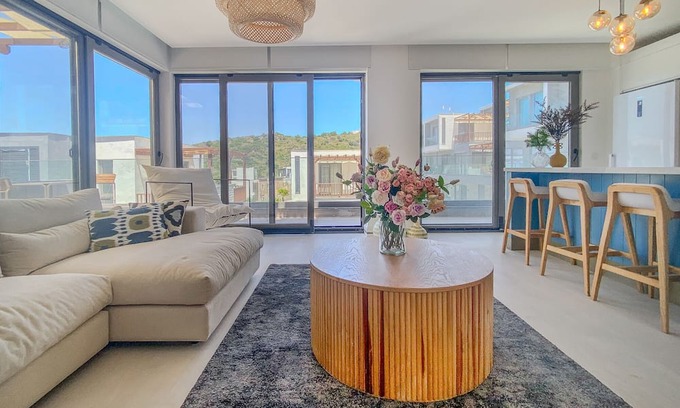 Experience the ultimate getaway in a fully furnished house in Milas, perfect for short-term stays and vacation rentals in Mugla. Just a 3-minute stroll to the beach, Flare features stunning sea views and a private balcony, offering the ideal setting for relaxation and enjoyment. With modern amenities and a prime location, it’s perfect for couples, families, or solo adventurers. Book your serene seaside escape today!