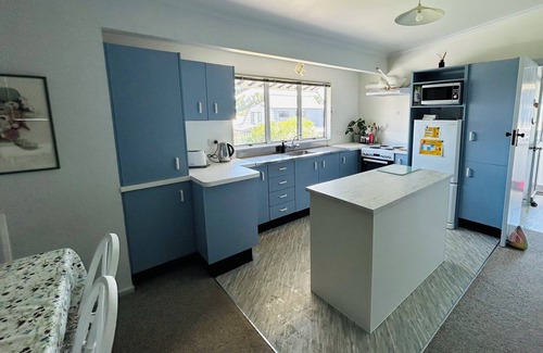 Escape to picturesque Waihi Beach. This bach features 3 bedrooms - 1 king bed, 1 queen bed, 2 bunk beds and 1 double sofa - perfect for families or friends looking for a getaway. With a homely living room and a double sofa bed, there's plenty of room to unwind after a day at the beach. This sunny cosy beach bach feels like a home away from home. With beautiful sea views, full sized fully fenced off backyard (safe for the kids!) and the beach only 1 minute walk from the house - the location is perfect.