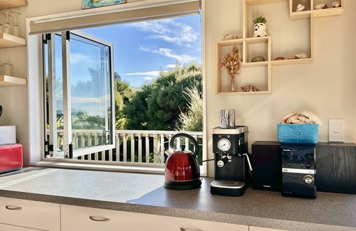 Hear the sounds of the sea and watch the colours of the sky & sea change throughout the day while sitting amongst the birds and trees. Watch the evening sun and gorgeous sunsets, colourful sky and rural views from the other side of the room and opposite deck. At night enjoy the sounds of the Moreporks calling and waves crashing, and see the stars and big sky from the living area, bedroom and decks.