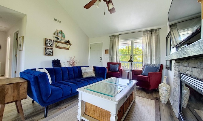 Relax in the hot tub and enjoy what is arguably the best view in the community. Large TV's available for you to watch after a day at the lake, or at the pool, or coming back from the bourbon trail. The main area has a great room with propane fireplace, living, dining and kitchen.