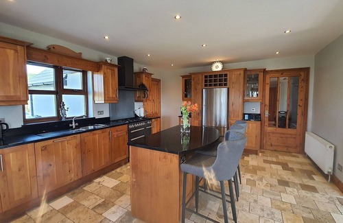 There is an spacious open plan kitchen, dining area and living room with a solid wood kitchen and granite work tops. It has all mod cons including dishwasher,microwave, range master style cooker, separate utility room with washer and dryer. There is also outside furniture along with a charcoal BBQ for the guests to enjoy lovely meals while admiring the lovely views.