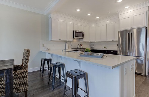 A welcoming stay awaits in the heart of downtown in this two story town home, furnished with all of the necessities for a relaxing getaway. The fully equipped kitchen, dining area, and living area all make spending quality time with one another easier than ever with the open layout and inviting amenities. The light and airy decor will have guests feeling luxurious during their stay, along with the spacious master bedroom on the top floor with a king bed and walk-in closet, to the tasteful bedrooms on the main floor with a queen bed in each. In the evenings, enjoy curling up by the fireplace, breathing in the fresh sea air from the balcony overlooking the charming Market Street corridor or reading a book while listening to the calming sounds of the ocean and breeze through the trees.