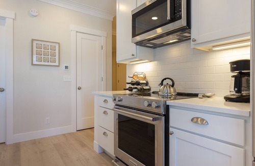 Feel like eating in? Head upstairs to the North Market Street Lofts’ rooftop, chill a bottle of wine in the rooftop wine fridge, and grill dinner on the 8-burner gas barbeque as you catch a stunning Washington Coast sunset. Alternatively, At Last’s kitchen is well-equipped with an electric range and expansive island for prepping meals of all sizes.