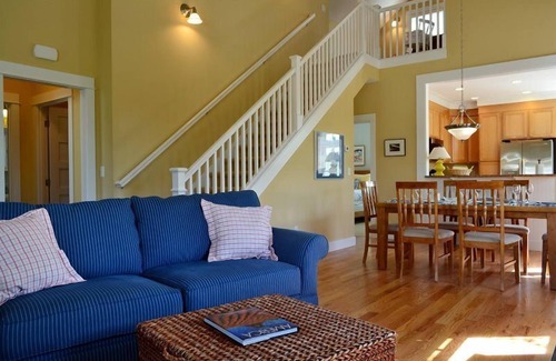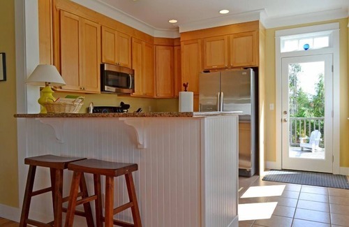 With the exception of one step up onto the front porch and a full flight of stairs up to the twin bed loft, Beachcomber is located all on one easily accessible floor. Please note, however, that the bathrooms contain tub/shower combinations that require stepping into.