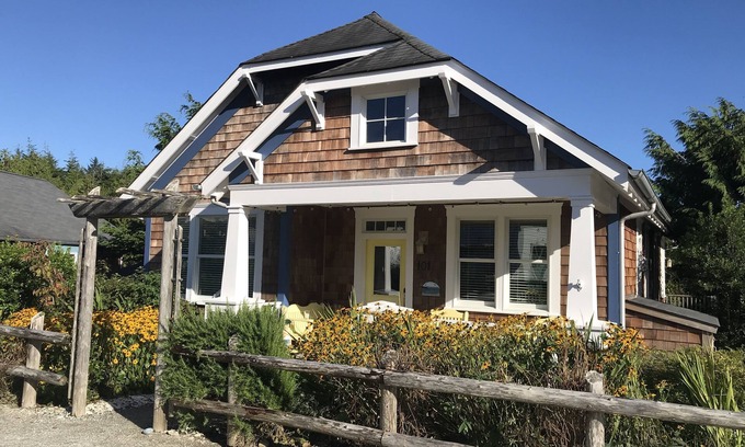 Beachcomber cottage is one of the most unique homes in Seabrook. With its spacious vaulted ceilings, a large, private back deck overlooking expansive forest views, a loft perfect for kids and a primary bedroom with a California-king size bed on the main floor, it provides guests with an understated luxury and comfortable relaxation away from home. With 2 bedrooms, 2 baths, and the kids' loft with two twin beds, Beachcomber comfortably sleeps six guests.