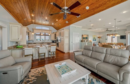 - Main living area designed with a reverse floorplan to maximize Gulf views.