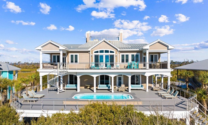 Best-rates for the Port St. Joe house starts from $980 per night with includes Bedding/Linens, Barbecue/Outdoor Cooking, Laundry, Pool, TV, Wheelchair Accessible, Security/Safety, Kitchen, View, Private Pool, Ocean View, Balcony/Terrace, Accessibility, Fireplace/Heating, Child Friendly, Internet, Air Conditioner StayAndPlay offers fully equipped golf villas, golf hotels, golf resorts, luxury golf cabins, and exclusive golf retreats, making it easier than ever to find your perfect golf escape — ideal for families, peaceful getaways, or pet-friendly retreats with the whole crew.