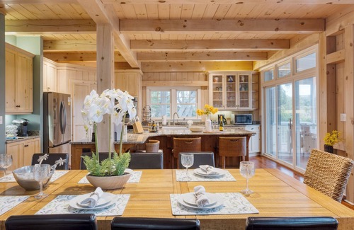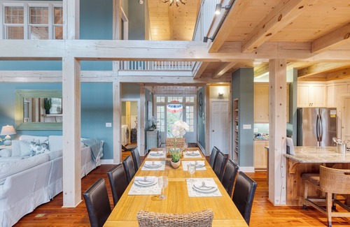 Picture cozy nights in the living room, curled up on the sofa with your favorite movie on the TV. The large dining table seats ten, while the kitchen bar offers extra seating for those casual, post-beach snacks. And speaking of the kitchen, it's fully equipped with everything you need—plus a gas range just waiting for your seafood feasts.