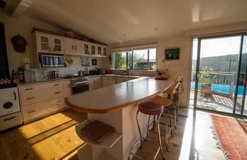 Surrounded by rolling hills, verdant pastures, and the soothing sounds of nature, this classic farmhouse near Matheson Bay offers an authentic escape from the bustle of modern life. With its inviting pool, three bedrooms exuding comfort, and a warm, rustic ambiance, it presents an unparalleled opportunity to experience the timeless charm and simple pleasures of country living in New Zealand's pristine landscape.