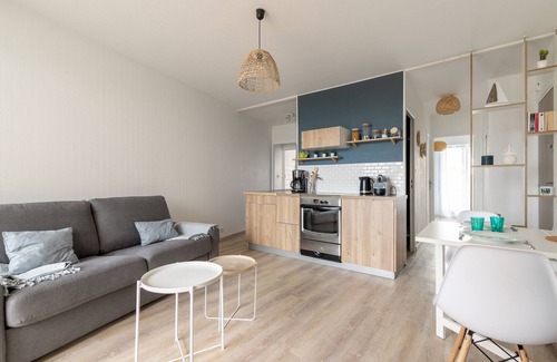 We open the bay window to let in the sound of the waves and make way for holidays: The change of scenery is instant and total! This charming 42m2 apartment recently renovated could not be better located for a holiday for 4 in Saint-Gilles-Croix-de-Vie.In just a few steps, you are on the main beach, restaurants and bars are a few hundred metres away.The night area consists of a room with two single beds that can be brought together to form a large bed and a room with a double bed as well as a comfortable bathroom with a shower.The bright living area has an open kitchen overlooking the living room, with a bay window facing the ocean. Fully equipped, the kitchen area is fitted with induction hobs, a refrigerator with a freezer compartment, a microwave, an oven, a dishwasher, a washing machine, two coffee makers (filter and espresso), a toaster and a kettle. The terrace, facing the large beach, extends the living area, where you will be comfortably installed to have breakfast. Internet access, television and electric heating add comfort to this cosy apartment. Another major asset; the private outdoor parking space will allow you to park easily. If needed, a 15m2 bicycle storage room is also available.For your information, a facade renovation is currently underway on the housing.Ideally located, the rental is located at:- 20 m from the sandy beach "La grande plage",- 450 m from the restaurant "La Parenthèse",- 600 m from the restaurant "Les Cabines",- 1 km from the town "City Centre of Saint Gilles",- 107 km from the theme park "Le Puy du Fou"- 12 km from the Golf course "Golf Bluegreen du Pays de Saint-Gilles-Croix-de-Vie",- 2 km from the supermarket "Super U and Drive",- 2 km from the station "Saint-Gilles-Croix-De-Vie Station",- 67 km from the airport "Nantes Atlantique Airport",You can see it and you go there on foot! The large sandy beach of Saint Gilles-Croix-de-Vie is just in front of the apartment. Depending on the tides and waves, it is the playground for surfers, the place of activities for swimmers and joggers or the paradise for fishermen. The promenade invites to more peaceful walks. Always active and particularly lively in summer, the port of St Gilles is 2 km away. Ice cream parlours and crêperies will delight food lovers. Maritime-inspired shops are both close to fishing boats and the train station! Around, paths and cycle paths lead to the rocky coast of the Vendée coastline and towards the pine forests that run along the dunes. Relaxation, entertainment and leisure activities are accessible in the immediate vicinity of the residence. Vendée also deserves to be discovered for other tourist sites: Les Sables d'Olonne is 32 km away, Saint Jean de Monts 17 km and Noirmoutier 42 km.This rental benefits from a concierge service with a team available throughout the stay for personalized services.The tourist tax is added to the rental amount and must be paid in advance of your stay.This furnished accommodation has a wi-fi connection.The furnished accommodation is not accessible to people with reduced mobility.Animals are not allowed in this rental.REF: hoomy10992