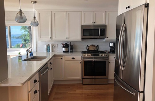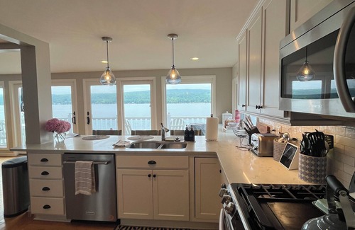 Welcome to your dream lakeside escape on picturesque Honeoye Lake! Perched atop its tranquil shores, our rental boasts upper and lower decks for breathtaking views. Inside, discover a newly remodeled kitchen seamlessly blending with an open floor plan, perfect for gatherings. Three living rooms feature state-of-the-art AV, while a bar offers panoramic lake vistas.