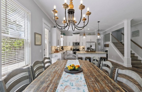 Beautifullyfurnished with Crown Molding throughout, lots of comfortable seating in the Living room, One King Master suite on the first floor, Two complete King Master Suites on the second floor, and a Bonus King master on the second floor with en-suite bath, and Bunk room with 4 beds. Elegant Coastal feel throughout this fine home.