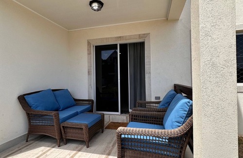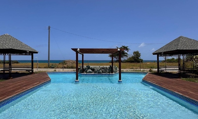 Overlooking the Atlantic is this newly furnished 5 bedroom townhouse in the heart of Crown Point. Accommodating up to 14 people comfortably, this is the perfect place to spend with family, friends, and make amazing memories. Laugh and lime around the central pool with gazebo while gazing out to the horizon, or enjoy the air conditioned interior before heading out to enjoy the closeby amenities that Crown Point has to offer.