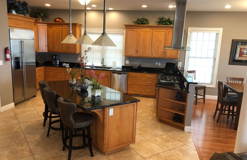 Beautiful Gourmet Kitchen with stainless steel appliances, and granite countertops- PLENTY of counter space!