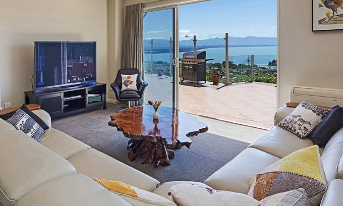 Magnificent, expansive views that sweep across Tasman Bay & the beautiful Western Ranges, the Waimea Inlet, Rabbit Island & the coastline of the Abel Tasman National Park!