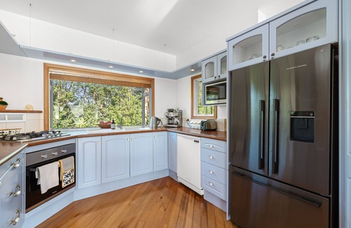 On warm summer days, extend your living space to the private deck, where ocean views and the surrounding garden elevate the outdoor dining experience. After preparing meals on the BBQ or in the fully equipped kitchen, retire to any of the four comfortable bedrooms for a restful night's sleep.