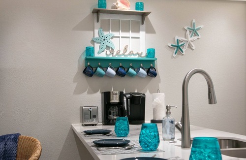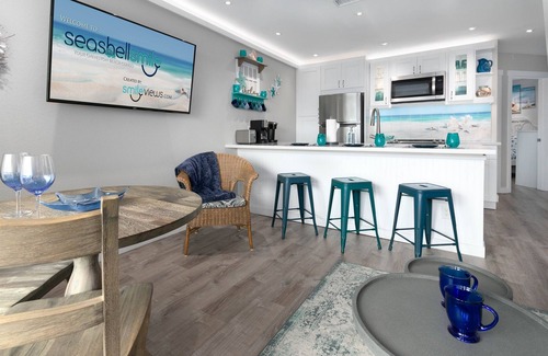 You will be staying in 'SeashellSmile', a luxury condo sitting on the seawall of Galveston Island. We invite you to share our creation, a romantic blend of beach cottage and soft pastels. Pamper your senses with soft leather furniture and seashell beach tile. The private bedroom sleeps two in the queen bed. The hallway area hosts 2 adult sized bunks. The leather queen sofa-sleeper folds out for 2 more. Enjoy! Save on food budget in your fully equipped kitchen. Wherever you choose to stay, I hope you bring home many special Galveston memories.