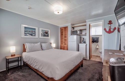 Located at the Seashore Condo Hotel, escape to Unit 16. This charming second-floor wood-paneled room is your perfect home base for a relaxing Fire Island getaway. Located by the bay and just moments from the beach, it's ideal for couples or solo travelers looking to unwind by the coast.
