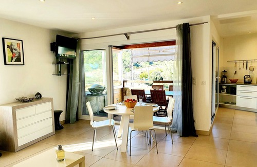 Private parking, private garden, swimming pool. Ideally located, 100 m from the beach near several restaurants, 250 m from the village center