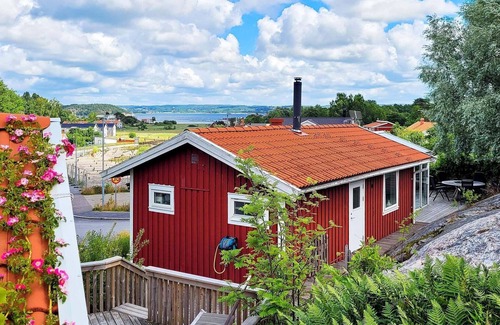 Charming and child-friendly cottage with beautiful sea views and quiet location in Höviksnäs on eastern Tjörn. Here you live in a quiet and child-friendly area with walking distance to a nice child-friendly swimming area and a stone's throw to the playground. The cottage is located on a natural plot with protective mountains and a spacious terrace where you can sit and enjoy the beautiful view of a good piece of food and drink. In colder weather, you can instead sit protected in the cozy glazed terrace with underfloor heating. You have a wonderful view of the Hakefjord both from the plot and from many rooms in the cottage. Here the whole family will enjoy themselves! The cottage is on an open floor plan with a combined kitchen and living room with all amenities. The living area has a heating stove and a TV corner with sofa group. You have a fast connection via fiber and Chromecast is available for the TV. Here is also an exit to the nice conservatory where the dining room furniture is located. Bright bedroom with a 160 cm wide double bed as the lower bed in a family bed and an upper bed of 70 cm in width, suitable for children. There is also a junior bed here, 160x70 cm. In the cabin there is also a sofa bed if you want to choose it as a sleeping place, however, the total maximum number of people is 5. There is a fully tiled fresh bathroom with a washing machine. The cottage also includes a nice guest cottage with two single beds, perfect for older children or young people who want to be raw about themselves. Or if you are two couples. The guest house has a cozy terrace where you can sit and enjoy your holiday. The cottage has plenty of both indoor and outdoor toys for the kids. About 1500 m to popular Låka bathing place, with sandy beach, cliffs, diving tower and toilets. Many sights and charming archipelago communities on Tjörn and Orust. Also take the opportunity to explore the fine hiking trails in the immediate area. Well-stocked grocery store in Myggenäs, 5 km. To small service shop and pizzeria about 1 km. Close to service and entertainment in Stenungsund with a large shopping center and to Skärhamn with, among other things, the well-known Watercolor Museum with Nordic contemporary art. To the big city of Gothenburg with the well-known amusement park Liseberg about 55 km. Good communications also by bus. Welcome to a fresh cottage with a nice location and wonderful views! Please note that during week 28 2022, final cleaning can not be ordered, bed linen can be ordered. Charger for electric car available, own cable must be brought.