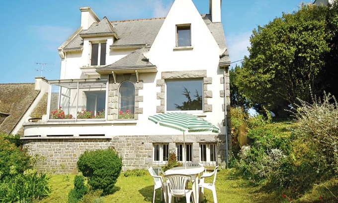 This secluded holiday home in Erquy offers stunning coastal views and a peaceful setting just 800 m from the beach. Perfect for families or groups, it accommodates up to 7 guests across 4 bedrooms. The home features a fenced, furnished garden ideal for relaxing after a day of sightseeing, and a sunny terrace with loungers and a barbecue for evening enjoyment.