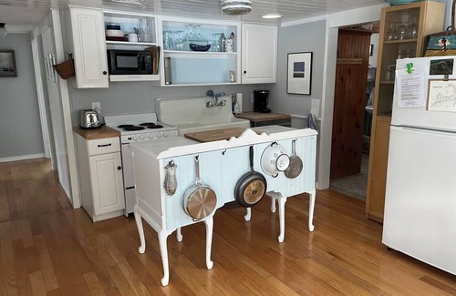 Our cottage is walking distance to the famous Brewster beaches and historic Brewster village! Experience all that Cape Cod has to offer, no matter which season you visit. Enjoy our cozy cottage, "Late Bloom," for a relaxing stay after a day at the Brewster Flats, a brisk hike to the bluff, or a bike ride along the rail trail. This cottage is surrounded by conservation land and is the perfect nature getaway - you will have deer visiting you in the morning while you enjoy your coffee on the beautiful deck. A well-equipped kitchen, three bedrooms, and 1.5 bathrooms with heating and laundry await! We also have a vintage 1972 Shasta camper on the property that sleeps two during the warmer seasons. Don't forget to enjoy the stars from the deck at night!!