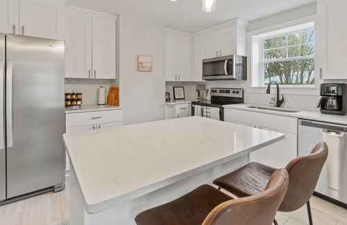 Welcome to Seaside Farmhouse! This 1920's farmhouse, recently fully renovated, is the perfect reason to take a break from the hustle and bustle of life and book your escape here. Situated on 1.5 acres, there's plenty of amenities around the property to keep you busy (or relaxed!)- including a basketball court, horseshoes, cornhole, ping pong, foosball, relaxing on the hammock or lounging around the fire pit. There are 5 bedrooms and additional bedding accommodations for up to 15 guests! We are committed to making your stay a memory to last a lifetime. On the second floor, we have a bedroom with a twin over twin bunk bed, a room with a queen bed, and a room with a king bed. On the third floor, we have a room with a full bed, and a room with a queen over full trundle bed- there is also a grey floor mattress available and a sofa bed in the living room. Established between the bay and the ocean, we are located about 20 minutes from historic Cape Charles.