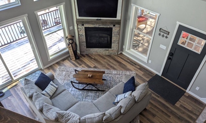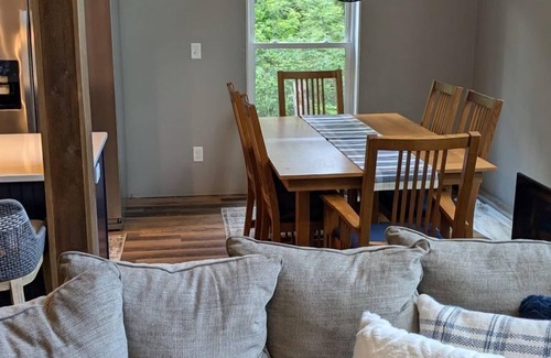 Our newly built cabin is nestled in the serene woods alongside a bubbling creek. This retreat offers four bedrooms, including a master suite and a bunk room with two twin over full bunk beds. It is equipped with modern amenities like air conditioning, Wi-Fi, and a gourmet kitchen. Take in the view of the creek from the loft or the spacious deck while cooking dinner on the outdoor grill. Surrounded by picturesque lakes and trails, it's perfect for fishing, water sports, and exploring on ATVs or snowmobiles. A true four-season haven.