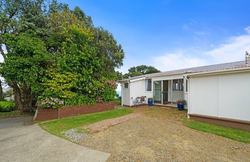 Elevated to enjoy breathtaking sea views from your sun-drenched deck, this charming Raumati South holiday home encompasses summer living with a retro twist. Welcome to Seaview Paradiso!