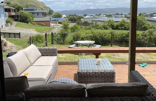 The Mahia Beach Shack is a perfect escape from the hustle and bustle of daily life. Stunning sea views overlooking Mahia along with the dramatic views of Mount Mokotahi. There is something very special about Mahia and sitting on the sun soaked deck, smelling the sea air and watching the changing colours of the sky, you will feel the relaxation wash over you. A NZ bachy feel but a modern interior, with a very nice and easy flow throughout the house. Modern kitchen amenities. Lots of outdoor space for, boats, sun lounging, games, or early morning exercise. There are seperate room for the loo from the bathroom. Whether you are into boating, surfing, swimming, walking, golfing, or just relaxing, Mahia has all that and more for you.