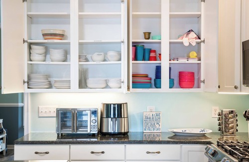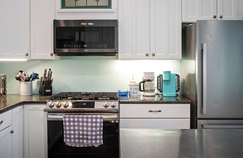 Our fully stocked kitchen includes complimentary coffee and creamers, pots, pans, silverware, and glasses for your convenience. You'll find a BBQ grill with all the necessary tools and propane, along with a smoker for all of your outdoor cooking needs. Additionally, many commonly used cooking oils, spices, and herbs are available, ensuring you have everything you need for culinary adventures.
