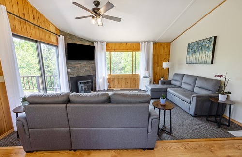 Come and stay at the secluded Cascade Cabin where you’ll have 9 acres all to yourself! This 3 bedroom house/cabin boasts vaulted ceilings in the open concept main living area/kitchen and in the bedrooms. Pets are welcome! Inside you’ll enjoy the pellet wood burning fire place with a 55 inch screen Smart TV above the fireplace. You will find a tv with a Roku in each of the 3 bedrooms. The main bedroom has a very comfortable king bed. The second bedroom has a queen bed with a comfortable computer chair and desk, a great place to work remotely with extremely fast internet! (Fiber 1gig!) The third bedroom has a log bunk bed that has 2 full beds and a single bed. Each bedroom has at least 1 lamp that has a USB, C- port, and electrical outlet. The living room has 2 sofa bed couches that pull out to 2 full size beds. The basement is unfinished/unusable open space with a washer and dryer and an extra fridge. This would be a perfect area to dry out camping gear! Outside, you’ll find a deck with a frw chairs aa side table and 2 chairs, a propane grill and a fire ring with 4 Adirondack chairs! You can even see Lake Superior from some points on the driveway. The Cascade River State Park is just 5 minutes away and the Cutface Creek Wayside Rest is just 4.1 miles away where you can get onto the Gitchi-Gami bike trail, 7.7mi away from Grand Marais, 11mi from Lutsen.