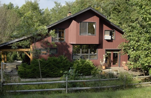 Rustic post and beam home rich with character. Five bedrooms and 2 full bath 2200 s/f sleeps up to 13. Cozy wood stove for heat with propane backup; a/c. Please be aware when you are booking this property that the two woodstoves are the primary source of heat for the home. The propane is merely a backup system and likely won't provide you the comfort you are looking for when used alone. House enjoys a large yard and mature woodland surroundings. Relax on covered porch or large shaded deck and enjoy the biodiversity of your secluded surroundings. Five minutes to Liberty Resorts skiing and golf; 15 minutes to Gettysburg. Property features artwork from various local renowned artists. Meander through the woods on our boardwalk to find an additional outbuilding equipped with a game room and sleeping quarters. Woodstoves are wonderful for ambiance and warmth, but please be aware when you are booking this property that the two woodstoves are the primary source of heat for the home. The propane is merely a backup system and likely won't provide you the comfort you are looking for when used alone. This year, we added a gameroom (detached building with access to home by a boardwalk) with additional sleeping quarters. Gameroom is equipped with board games, puzzles, pool table, ping pong table and poker table and a double bed and queen bed as well as a small bar area. The hot tub is available at additional fee. If you are not a nature lover and would be upset by the occasional visitation of a mouse or spider, then I recommend looking elsewhere. We strive to keep the home critter free at all times, but this is a rustic home in the woods. There are no guarantees.
