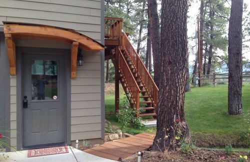This newly built guest quarters was designed for your comfort, convenience, and for the best views! The upper deck is directly off the main floor for relaxing and grilling. With all this available from your quarters; views, flowing water, hiking and hills, you may never need to get in your car! But if you do, in addition to all that Vallecito Lake and Durango offers, your retreat borders the Weminuche Wilderness, the largest in the state of Colorado. Here, you can enjoy beautiful hikes in the forest.