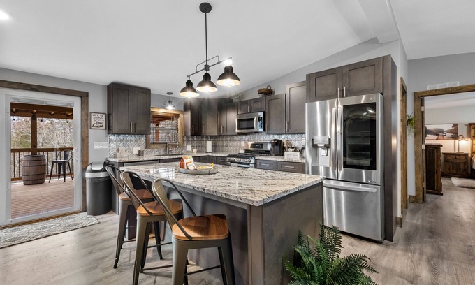 Situated in a quiet area of Holiday Island close to Table Rock lake. Close to Downtown Eureka. Relax with family and friends at this newly renovated cabin. Sit on the back deck and watch the deer, listen to the birds while having your morning cup of coffee. After it rains you can enjoy the sound of water from the little stream on the side of the property. Great home base for Table Rock lake, Eureka Springs, Hiking, Roaring River, Beaver lake. Branson MO and Rogers AR are approx. 45 min drive. With this home being in the Ozark mountains, the first driveway can be intimidating but is very manageable. We use it all of the time. There is a second drive on the south end that is a little more accommodating if you don't feel comfortable with the first one. There is ample parking in the drive and room for a trailer. (Smaller boat or side by side)