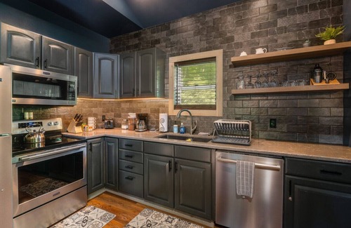 For dining, you can cook in our kitchen, out on our grill, or checkout the local eateries as close as 5 miles away. We have the benefit of being in a secluded location that is a quick drive away from conveniences like restaurants, grocery stores, etc. Note: many local establishments are closed earlier in the week, or do not stay open late, so we advise bringing some snacks if you will arrive late. Our kitchen is stocked with cooking utensils, pots, pans, dinnerware, and basic oil and spices. Our grill is a charcoal grill, and it is on a bring-your-own-bag basis.